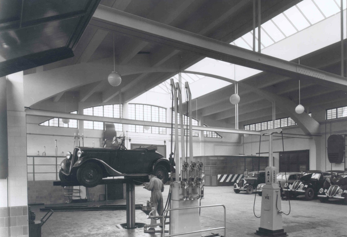 Ezek a képek már az 1938-as bővítést követően készültek, amelyről a Tér és Forma építészeti magazin így írt: „A Fiat Automobilok Magyar Eladási R. T. Aréna-úti gyártelepe Budapest legszebb service- és javítóműhelye. Oly nagy közkedveltségnek örvend, hogy az utóbbi időben szűknek bizonyult. Azt a nagy és nehéz feladatot kellett megoldani, hogy a gyártelep racionális munkamenetét biztosító elrendezést megtartva, azt kb. 100 %-kal növeljük. Ezt a feladatot sikerült teljes mértékben az új bővítés általános elrendezésével oly módon elérni, hogy az nem toldalék jellegű, hanem ellenkezőleg, esztétikailag is a meglévő régi részszel egységes monumentális képet ad.