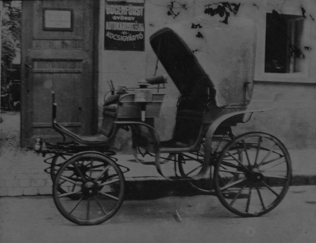 Kocsi Bogenfürst György műhelye előtt. Forrás: Magyar Műszaki és Közlekedési Múzeum
