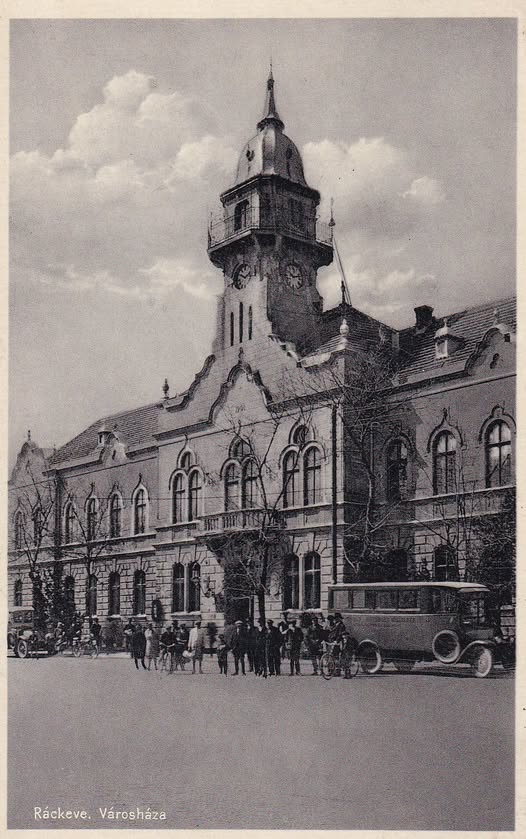 A kép bal szélén valószínűleg Sári Károly Renault gépkocsija, jobb szélén ugyanő Fiatja, amely ugyan nem buszként szerepelt az 1930-as gépjármű-tulajdonos listában… (Forrás: Árpád Múzeum, Ráckeve)