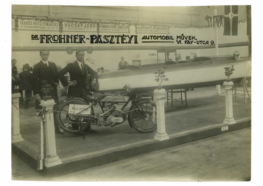 Frohner-Pásztélyi: „ez a minden izében magyar cég motorkerékpárján kívül egy saját gyártmányu motorcsónakot állított ki. Az elsőrendű fenyőfából készült karcsú csónakba egy 60X70 mm. furat-löketű kétütemű vízhűtéses motor van beépítve, amely nyolc lóerőt reprezentál és a csónaknak normális vízállás mellett ár ellen 15 kilométeres sebességet kölcsönöz. Emlitésreméltó, hogy a villamos gyujtókészüléken kívül a csónak minden része (a motoröntvény is) magyar gyártmány. A csónak öt kényelmes ülőhellyel bir. Forrás: Farnadi Zsolt