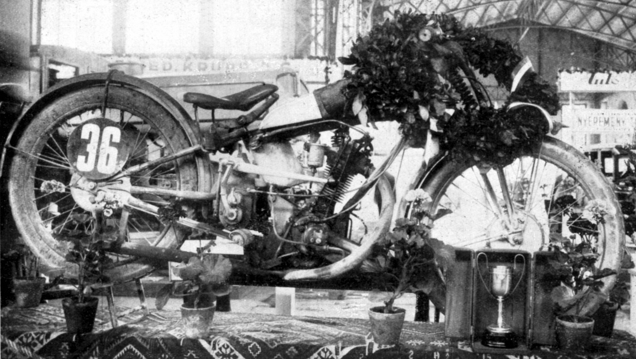 A Méray standon a TT győztes motort helyezték a központi helyre. A fotót később a cég prospektusában publikáltákForrás: saját archívum